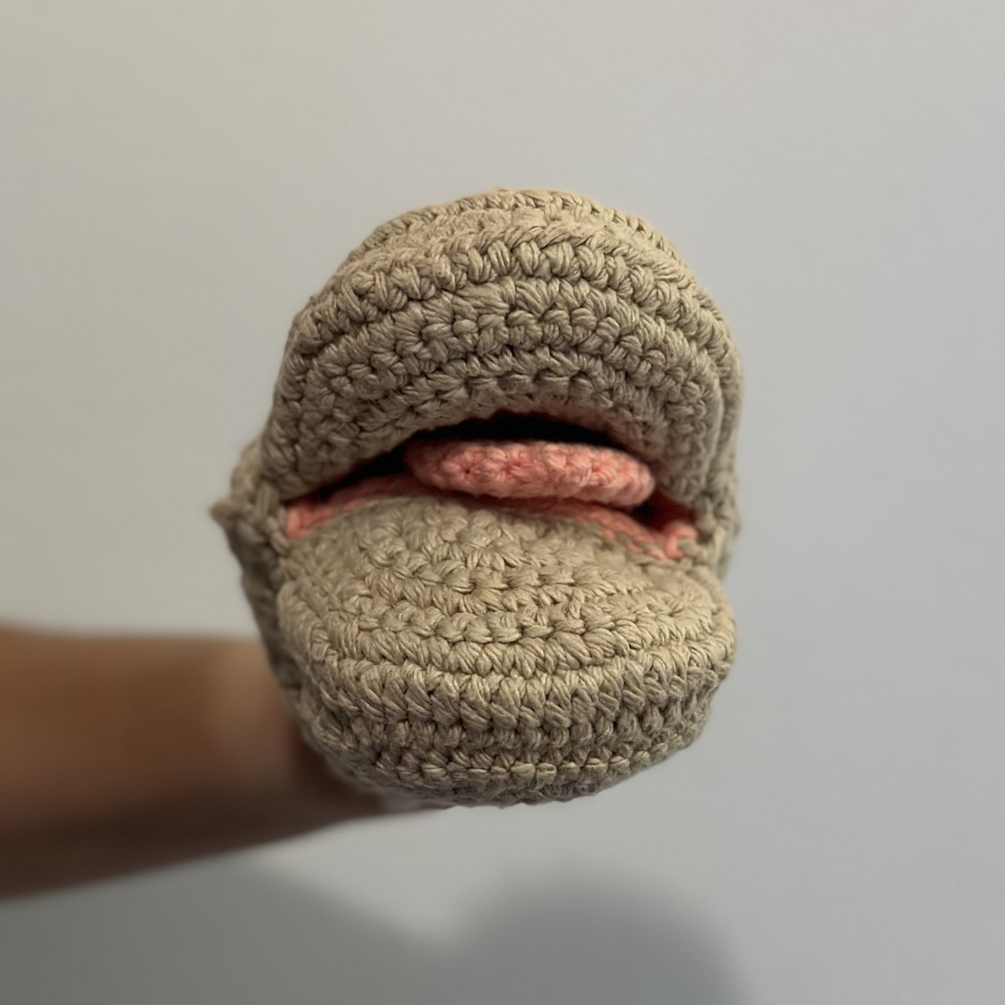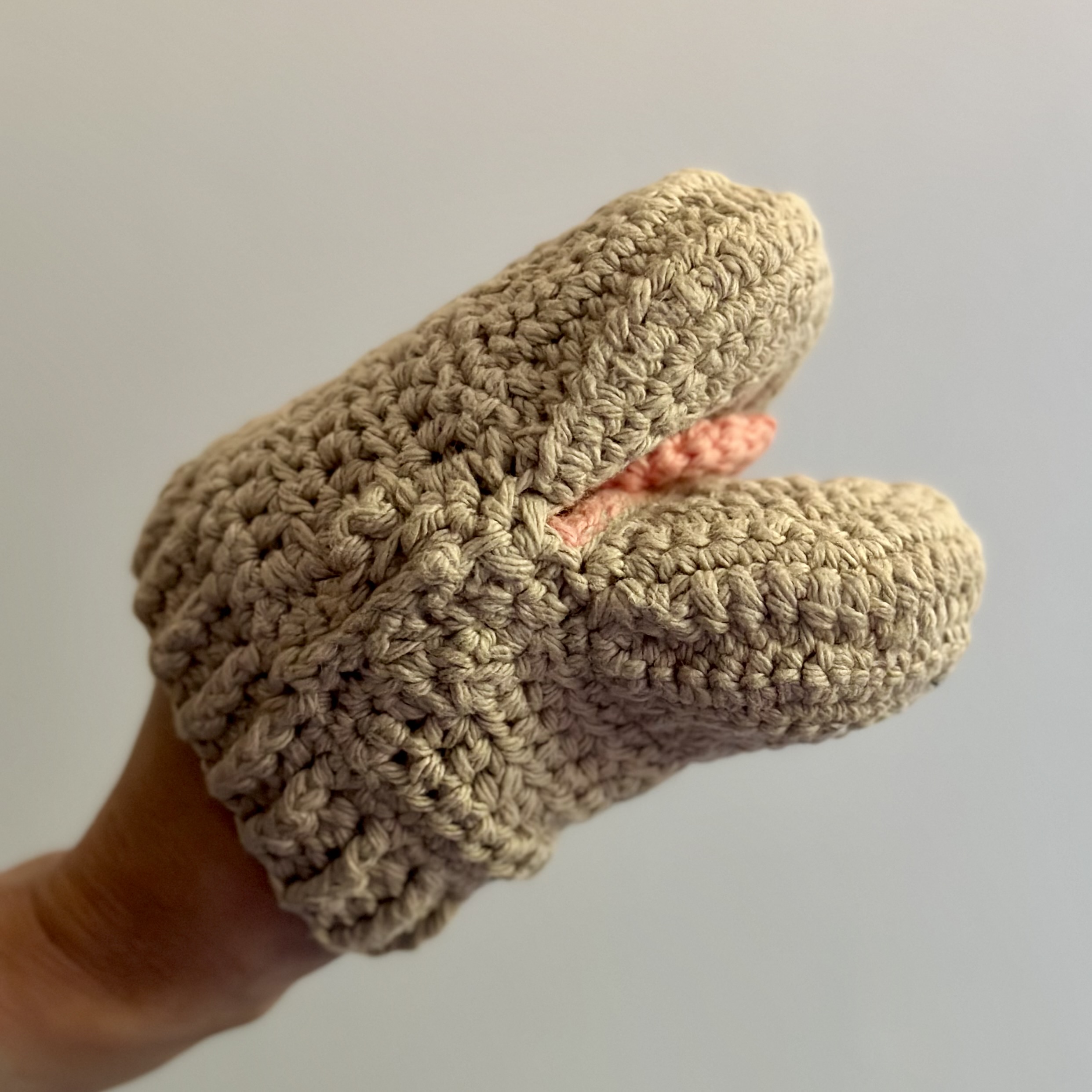 This hand puppet was created to work alongside the Lactation breast pattern. It has been tested however, hand sizes are all different so the use of stitch markers is highly encouraged. When building the hand puppet symmetry is key. I also recommend using a medium tension, while you don’t want visible gaps, you also do not want pinched fingers.
